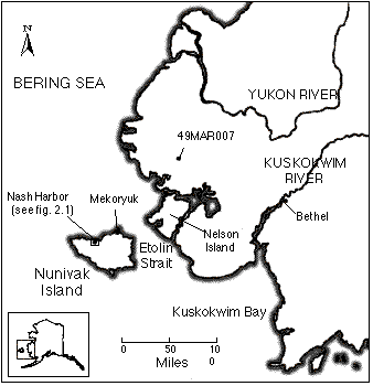 Chatters (1972), in a brief report to Nowak, outlined the recovery of mammal and bird remains from several units at the Mekoryuk Village sites. Many of Chatters' results were difficult to interpret, since Chatters referred to the sites with their field designations. Without Nowak's field notes or Chatter's laboratory notes, I could ascertain to which sites and periods of occupation Chatters refers. Moreover, I had no information on conditions of excavation, such as screen size employed (if any). While most of Chatters' analyses appear to refer to Norton-era occupations that predate materials in my study, I will occasionally refer to his work when discussing the implications of faunal distributions at Nash Harbor.